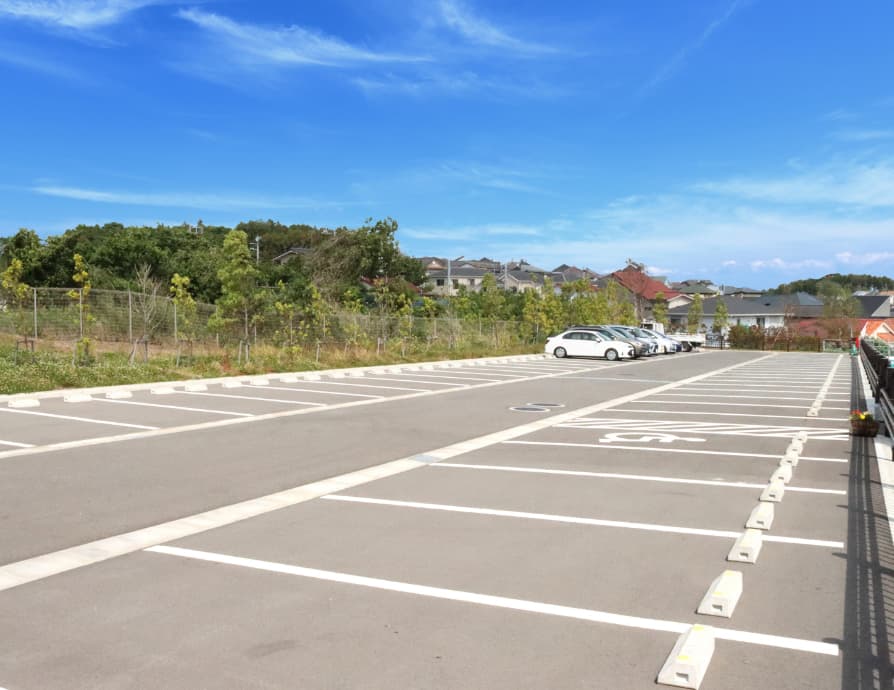 波をイメージした曲線を描く擁壁を背にしたゆとり区画